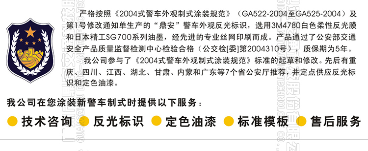 當(dāng)前位置:首頁 > 產(chǎn)品中心 > 反光材料類 > 警車外觀反光標(biāo)識(shí)