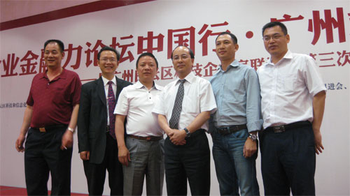 企業(yè)金融力論壇中國行·廣州站——暨廣州市白云區(qū)科技企業(yè)家聯(lián)誼會第三次會議于2011年4月20日在廣州市白云國際會議中心舉行,大會邀請永安信傳播喬志杰教授與大家進(jìn)行交流,鼎安公司參與協(xié)辦本次論壇,取得了圓滿成功。 出席嘉賓合影 鼎安文湘?zhèn)タ偛门c出席領(lǐng)導(dǎo)合影