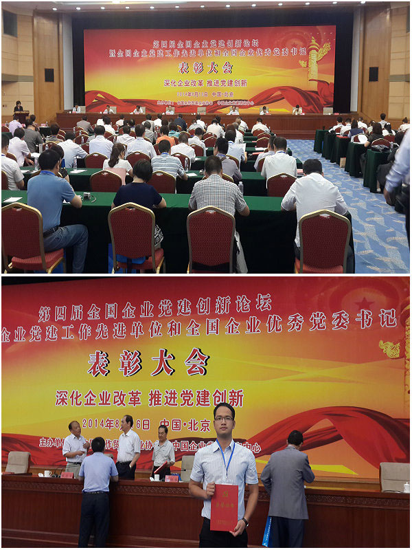 2014年8月15日,“全國(guó)企業(yè)黨建創(chuàng)新論壇暨表彰大會(huì)”在北京全國(guó)人大會(huì)議中心勝利舉行。全國(guó)人大常委會(huì)原副委員長(zhǎng)、黨組副書(shū)記王漢斌、中共中央組織部原部長(zhǎng)張全景等重要嘉賓領(lǐng)導(dǎo)出席本次論壇。我司作為全國(guó)企業(yè)黨建工作代表受邀出席本次會(huì)議,并獲得“2014年度全國(guó)企業(yè)黨建工作先進(jìn)單位”榮譽(yù)稱(chēng)號(hào),黨支部書(shū)記張宏新獲得“2014全國(guó)企業(yè)黨建工作先進(jìn)工作者”榮譽(yù)!這是對(duì)我司過(guò)去重視企業(yè)黨建工作,把公司發(fā)展結(jié)合黨建創(chuàng)新,深化企業(yè)改革重要成果!