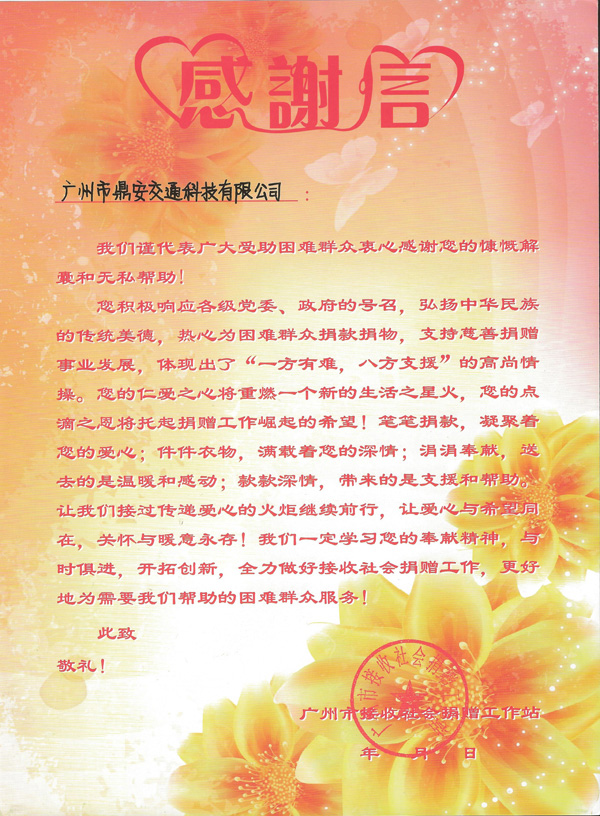 2016年3月30日,廣州市鼎安交通科技有限公司黨支部開展了主題為“衣+衣=愛”愛心捐衣活動(dòng),傳遞愛心,溫暖更多需要幫助的人。 此次活動(dòng)得到了鼎安全體黨員、群眾和親友的大力支持,活動(dòng)現(xiàn)場(chǎng),隨著一件件衣物放入箱子里的,還有滿懷熱量的愛心,希望自己微小的力量,能幫助有需要的人。 其后,將衣服分類放置整理,于第二天上午統(tǒng)一運(yùn)送到廣州市民政局下屬的公益單位——廣州市接收社會(huì)捐贈(zèng)工作站,該站工作人員對(duì)此舉給予了高度肯定,并開具了相關(guān)捐贈(zèng)憑證和感謝信。