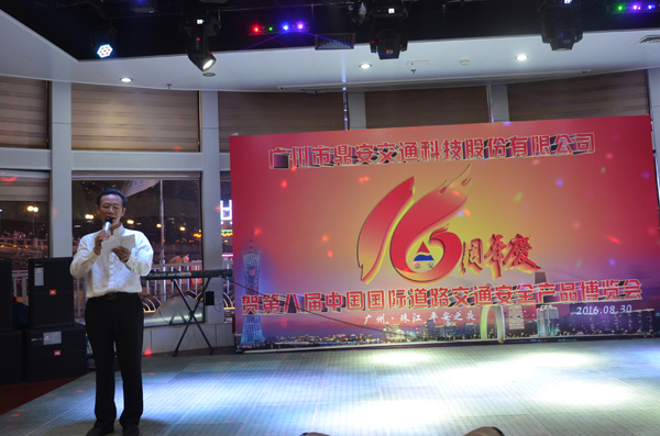 為答謝廣大客戶16年來對廣州鼎安的支持與厚愛,也恰逢第八屆中國國際道路交通安全產(chǎn)品博覽會舉辦之際,廣州鼎安在2016年8月30日晚17:00—21:00,在“奇跡號”游船上,舉辦了“廣州市鼎安交通科技股份有限公司16周年慶、賀第八屆中國國際道路交通安全產(chǎn)品博覽會”珠江夜游晚會。