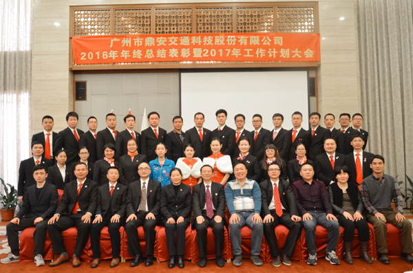 旗幟飛舞,歌聲嘹亮,廣州市鼎安交通科技股份有限公司2016年年終總結(jié)表彰暨2017年工作計(jì)劃大會在《鼎安之歌》的歌聲中正式拉開帷幕!