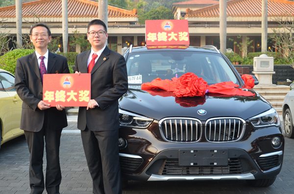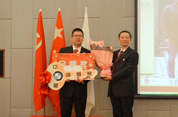 隨后,公司表彰在過去一年為公司做出突出貢獻(xiàn)的員工,給年銷售業(yè)績超千萬的營銷大區(qū)經(jīng)理陳立頒出了本年度最大獎(jiǎng)項(xiàng)——金鼎獎(jiǎng)(寶馬),以此鼓勵(lì)他為鼎安發(fā)展的長卷中添上濃墨重彩的一筆!
