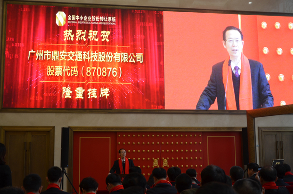 2017年3月23日上午,廣州市鼎安交通科技股份有限公司(證券簡稱:鼎安交通,證券代碼:870876)在北京的全國中小企業(yè)股份轉讓系統(tǒng)中心舉行掛牌上市敲鐘儀式。