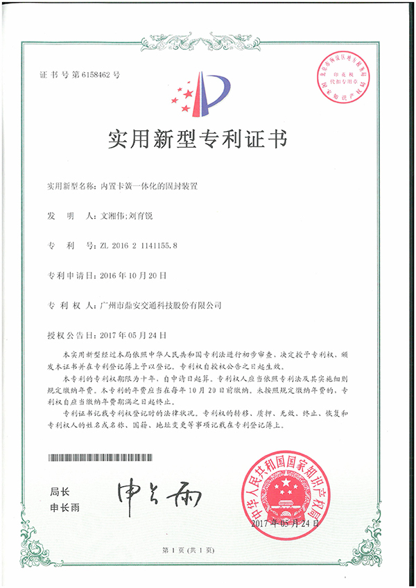 至此,鼎安交通已擁有十七項(xiàng)國(guó)家專利。取得如此專利成果,是鼎安交通一直以來(lái)注重企業(yè)科技創(chuàng)新發(fā)展,提升企業(yè)核心競(jìng)爭(zhēng)力,經(jīng)過(guò)潛心研究、實(shí)踐的結(jié)果。