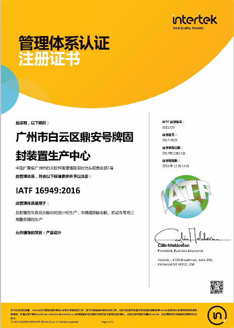 正是基于這種管理理念,鼎安交通管理層高度重視,直接導(dǎo)入新版16949標(biāo)準(zhǔn),組建了年輕有活力、學(xué)習(xí)能力強(qiáng)的體系認(rèn)證團(tuán)隊(duì),按照標(biāo)準(zhǔn)要求,結(jié)合公司實(shí)際,建立實(shí)施并有效運(yùn)行鼎安特色的16949管理體系,并于2017年12月,一舉獲得IATF16949質(zhì)量管理體系認(rèn)證,應(yīng)對(duì)汽車行業(yè)中因?yàn)榉爆嵉墓?yīng)鏈和充滿競(jìng)爭(zhēng)的全球市場(chǎng)所將要來(lái)臨的挑戰(zhàn)。