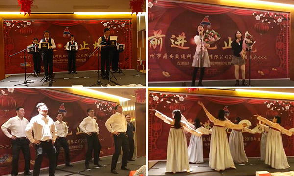 會議過后的當(dāng)天晚上,一同舉辦了主題為“前進,無止境”的晚宴,晚宴節(jié)目精彩絕倫,各種歌舞表演美輪美奐、別出心裁,在場觀眾掌聲笑聲不斷;鼎安交通CEO文湘?zhèn)ジ且砸晃簧衩刎斏駹數(shù)菆鼋o大家送祝福,晚宴氣氛熱情高漲。