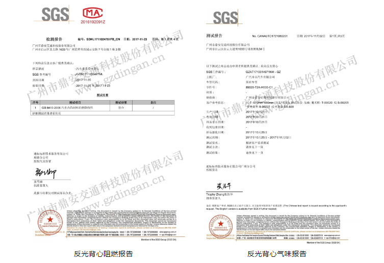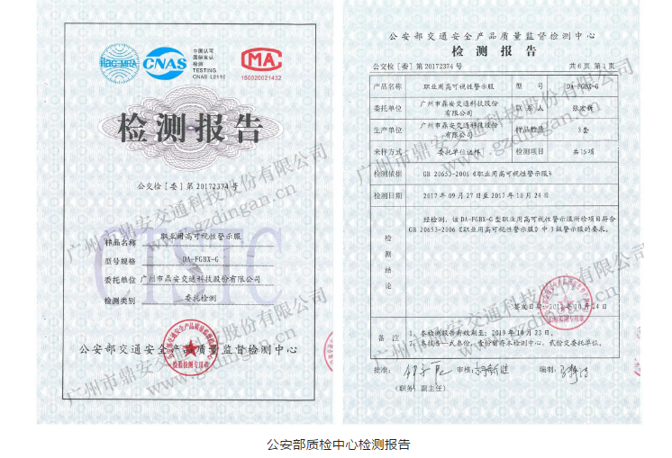 鼎安反光背心通過了SGS阻燃、氣味、VOC、ELV等專業(yè)測試,取得了十三項權(quán)威的專業(yè)檢測報告。