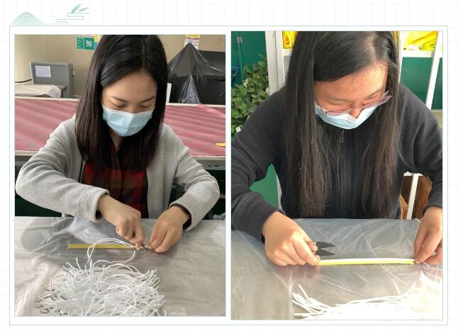 口罩生產(chǎn)的現(xiàn)場(chǎng)熱火朝天,女同胞們也正有序有效地協(xié)助生產(chǎn),為調(diào)節(jié)現(xiàn)場(chǎng)的緊張氛圍,在人事部門的帶領(lǐng)下開展了一次耳帶繩裁剪大比拼,在十分鐘內(nèi)裁剪最多耳帶繩的女同胞即可獲得一盒鼎安出品的一次性使用防疫口罩,獎(jiǎng)品十分吸引。比賽時(shí)女同胞們個(gè)個(gè)化身超級(jí)剪刀手,眼疾手快,精準(zhǔn)無(wú)比!最后,恭喜譚杏蘭成為這次比賽的“三八小能手”!