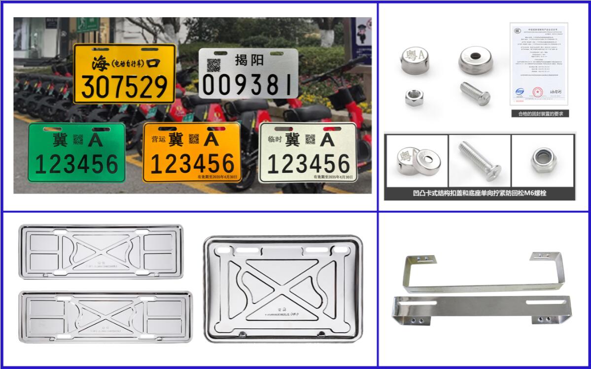 b、號(hào)牌安裝類(lèi):電動(dòng)自行車(chē)號(hào)牌、機(jī)動(dòng)車(chē)專(zhuān)用固封裝置、汽車(chē)號(hào)牌托盤(pán);