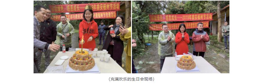種植完樹木,大家依舊興致盎然。我們圍在一起,開展生日會活動,共同為壽星唱生日歌祝福,鼎安的關懷無微不至,希望鼎安一家人團結一致,共同為2019年的目標努力。