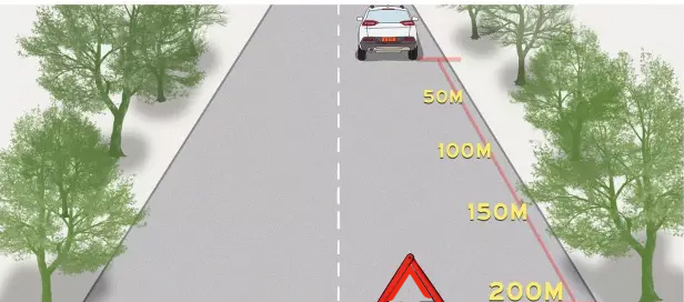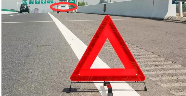 當需要在路上緊急停車時,應將三角警示牌放置在正后方或者同個車道上,切記不能放在側(cè)后方。