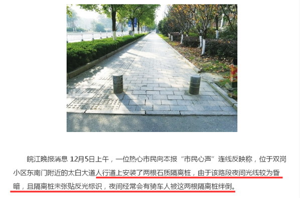 比如在街上的石頭墩子,方便夜間行車和路人行走,避免發(fā)生如下圖的情況。