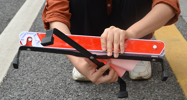 我見過有些三角警告牌確實好安裝,但是拆的時候卡扣不好掰。所以,建議大家,可以不拆,直接把底座收好,放到后備箱中。車子盡快開到一個安全地方,或者回了家,再再慢慢收起來。